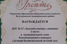 Наш детский сад занял 2 почётное место в муниципальном этапе Республиканского конкурса "Лучший билингвальный детский сад"! Молодцы!Так держать