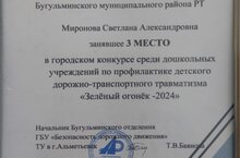 20.02.2024 г. в городе прошел муниципальный этап республиканского смотра-конкурса среди воспитателей и дошкольных образовательных организаций Республики Татарстан по профилактике детского дорожно-транспортного травматизма «Зеленый огонек-2024». Наш детский сад представляла воспитатель Миронова Светлана Александровна и заняла 3 место. Поздравляем и желаем новых профессиональных побед. Так держать!