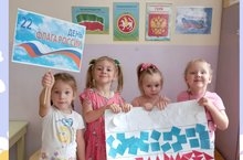 Бу гаиләгә, балалар бакчасына, туган шәһәргә, Туган табигатькә, ватандашларга мәхәббәт хисләре, үз иленең гражданы буларак, символикасына – флагка, гимнга, гербка хөрмәт белән карау. РФ Дәүләт флагы көнен бәйрәм итү кысаларында безнең балалар бакчасында балаларны Россиянең дәүләт символлары белән таныштыруга юнәлдерелгән чаралар узды. Педагогларның балалар белән уртак эшчәнлегендә әңгәмәләр үткәрелде, дәүләтебез символикасы турында китаплар укылды: "Минем илем флагы", "Ак, зәңгәр, кызыл", тәрбияләнүчеләр Россия символикасы сурәтләнгән иллюстрацияләрне, альбомнарны һәм рәсемнәрне карадылар.