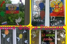 В рамках акции "Флаги России" воспитанники старших групп совместно с родителями оформили окна.