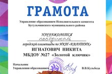 Муниципальное бюджетное дошкольное образовательное учреждение детский сад комбинированного вида №27 "Золотой ключик" Бугульминского муниципального района Республики Татарстан/ Татарстан Республикасы Бөгелмә муниципаль районы мәктәпкәчә тәрбия һәм белем бирү муниципаль бюджет учреждениесе "Золотой ключик" 27 нче катнаш төрдәге балалар бакчасы