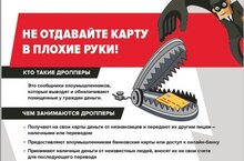 Чем занимаются дропперы? Получают на свои карты деньги от незнакомцев и передают их другим лицам - наличными или переводом. Предоставляют злоумышленникам банковские карты или доступ к онлайн-банку. Принимают наличные деньги от неизвестных людей, вносят их на свои счета для последующего перевода.