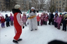 Сегодня в нашем детском саду прошла Масленица. На праздник к детям пришли гости: Скоморохи, Зима, Весна. Гости играли с детьми в игры, пели песни и танцевали.
