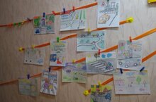 Ата-аналар балалар белән бергә «Без кагыйдәләрне беләбез һәм аларны үтибез!» ата-аналарны юл хәрәкәте кагыйдәләрен үтәргә өнди торган рәсемнәр ясадылар.