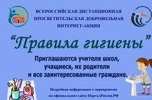 С 21 августа по 8 октября на Портале Россия (ПорталРоссия.РФ) будет проходить Всероссийское добровольное дистанционное цифровое просветительско-образовательное мероприятие «Правила гигиены и вакцинации». Позаботься о своём здоровье и здоровье своих близких и родных людей! Твоя АКТИВНОСТЬ – твоя победа!