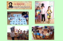 Воспитатели рассказали детям о детстве Пушкина и его творчестве, ребята смотрели презентацию, отгадывали загадки по произведениям, узнавали сказки по иллюстрациям. С огромным удовольствием смотрели мультфильм и участвовали в викторине по сказке А. С. Пушкина Дети отлично справились с заданиями, проявили сообразительность и творчество.____________________Бүген балалар һәм өлкәннәрнең яраткан шагыйребез Александр Сергеевич Пушкинның туган көне, аның әкиятләрендә, шигырьләрендә, күпме матурлык, зирәклек... Тәрбиячеләр балаларга Пушкинның балачагы һәм аның иҗаты турында сөйләделәр, балалар презентация карадылар, шигырьләр буенча табышмаклар чиштеләр, иллюстрацияләр буенча әкиятләр белделәр. Балалар бик теләп мультфильм карадылар һәм А. С. Пушкин әкияте буенча викторинада катнаштылар. Биремнәрне бик яхшы үтәделәр, зирәклек һәм иҗат күрсәттеләр. -
