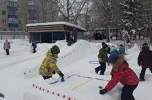 Прогулка в детском саду зимой – не только прекрасное время для развлечений на открытом воздухе, но и замечательный способ оздоровления. И для того, чтобы прогулка стала продуктивной, по традиции детского сада на участках строятся постройки, которые создают эмоциональный фон воспитанников.Педагоги с удовольствием превращали заснеженные участки в волшебную страну, где можно встретить мышку, слона, ежика, лягушку, а также покататься на горке, побегать по лабиринту, поиграть в аэро хоккей, поскользить по ледяным дорожкам, метать в цель, поиграть в многоуровневый лабиринт и многое другое. -