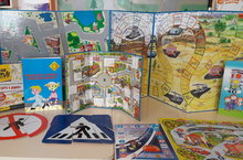 Сегодня была оформлена выставка дидактических игр и методических пособий для организации работы с воспитанниками по изучению правил дорожного движения, пожарной и личной безопасности.