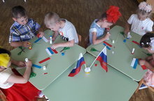 Патриотическое воспитание, является составной частью общего воспитательного процесса, представляет собой систематическую и целенаправленную деятельность, привитие детям чувства гордости, глубокого уважения и почитания символов Российской Федерации – Герба, Флага, Гимна, другой российской символики.Прошел патриотический праздник «День Российского флага». В этот день прошло развлечение «День флага», на котором ребята узнали об истории появления Российского флага и его значимости для нашего государства. Главная цель развлечения - рассказать детям историю праздника, важность и значение государственных символов России.Накануне были проведены ознакомительные беседы - презентации «Триколор страны родной». Беседа о гербе и флаге России очень заинтересовала ребят. Они еще раз поговорили о значении символов нашего герба, флага, вспомнили, что главная песня России – это гимн. Была оформлена выставка творческих работ на тему: «Флаг Родины», все работы получились красочными. -