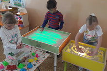 Игры с кинетическим песком для развития ребенкаУдивительные тактильные ощущения и возможности для формирования мотивации к созидательной продуктивной деятельности предоставляет необычный сыпучий материал, по структуре подобный влажному и пластичному пляжному песку. Отличает его мягкость, текучесть, а во время работы руки малышей остаются чистыми, поэтому игры с кинетическим песком в детском саду набирают популярность.Игра с кинетическим песком - это, в первую очередь, развитие мелкой моторики рук и тактильных ощущений.Так же, при игре с песком реализуются следующие цели:1) развитие осязательного чувства ребенка при работе двумя руками, что благотворно отражается на развитии его речи;2) развитие сосредоточенности, концентрации внимания;3) формирование нестандартного творческого мышления. -