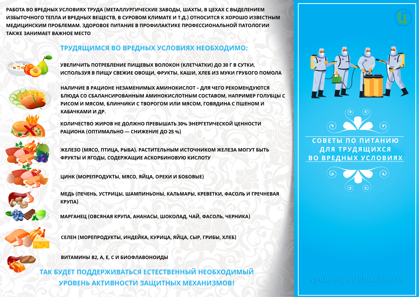 Советы по питанию для трудящихся во вредных условиях