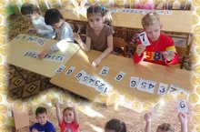 Чтобы расколдовать лесных жителей, которых злая колдунья превратила в камни, нам надо было пройти все задания. Игры: "Найди лишнее слово", "Цифры-соседи той цифры, которую я назову", "Встань по порядку от 1 до 10","Танграм". И завершили "Весёлыми домиками" (состав числа 10).