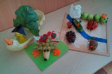 Сегодня у нас состоялась выставка поделок, изготовленных нашими родителями. Это были и самолеты из кабачков, и сказочные кареты из тыквы, смешные мордочки из кабачков, резная ваза с цветами из кабчка, огурца и помидора. Фантазии не было предела.