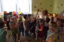 Под таким названием прошло итоговое мероприятие в первой младшей группе. Детки закрепили, полученные за неделю, знания по теме "Зима". Малыши отгадывали загадки, сами устроили в группе "снегопад", поиграли с пальчиками, а в завершении выполнили коллективную работу "Снег, снег кружится". Детки, под руководством воспитателя, рисовали снежок, но не кисточками, а ватными палочками, что еще больше заинтересовало малышей.