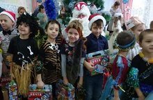 Ребята веселились с Дедом Морозом и Снегурочкой, с увлечением рассказывали стихи о зиме, вместе со сказочными героями пели, танцевали, участвовали в весёлых играх и хороводах. Все получили новогодние подарки и чудесное праздничное настроение! -