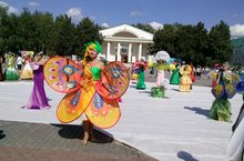 Сегодня наш детский сад принял участие в городской выставке "Женщина-цветок", которая проходила на площади Ленина. Автор яркого, красочного костюма "Бабочка на мимозе" - воспитатель Гатина Альмира Фанизовна.
