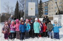 В нашем детском саду есть хорошая традиция. Каждый год в преддверии большого праздника, дети старших и подготовительных групп возлагают цветы к стелле "352 Оршанская стрелковая дивизия".
