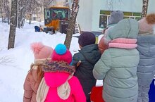 Сегодня воспитанники старшей группы "Пилоты" на прогулке наблюдали за работой трактора, который чистил снег на территории детского сада.