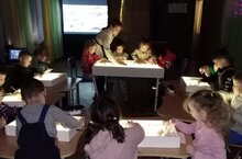 Старшая группа "Пилоты" посетили Детская библиотека г.Бугульма, где дети вместе с преподавателем Котловой А. А. учились составлять мультфильм на освещенных столах при помощи песка. Маленькие дети обожают пачкаться, возиться руками в сыпучих материалах, создавать фантазийные образы, отдаются творческому процессу целиком.