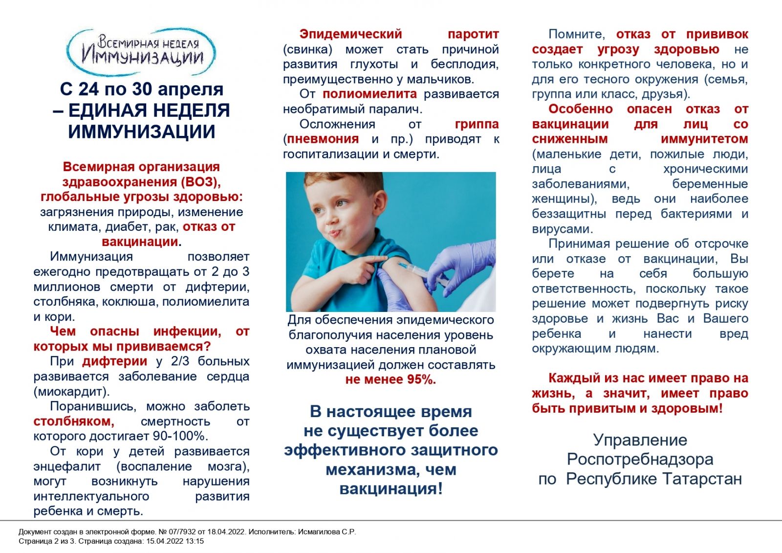Основная цель ЕНИ-2022 – повышение уровня знаний населения о важности иммунизации в предупреждении инфекционных заболеваний.