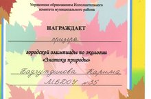 Наш воспитанник Бадгутдинов Карим принял участие в городской экологической олимпиаде "Знатоки природы" и стал призёром. ПОЗДРАВЛЯЕМ!!!