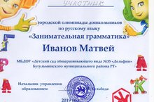 Наш воспитанник Иванов Матвей принял участие в городской олимпиаде дошкольников по русскому языку "Занимательная грамматика".
