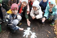 В рамках Недели безопасности в подготовительной к школе санаторной группе "Светлячок" проведена акция "Возьми ребенка за руку!". Воспитатели и дети с помощью трафарета и краски нанесли на асфальт эмблему "Возьми ребенка за руку", призывая всех взрослых крепко держать ребенка, переходя проезжую часть.