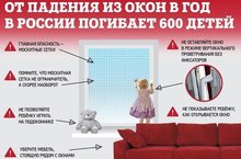 Падение из окна — является одной из основных причин детского травматизма и смертности, особенно в городах. Дети очень уязвимы перед раскрытым окном из-за естественной любознательности. Каждый год от падений с высоты гибнет огромное количество детей. Будьте бдительны!