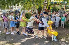 2. В средней группе “Улыбка” проведена квест-игра «Уголки родного города», который прошёл в парке культуры и отдыха. Дети отгадывали загадки о растительном мире парка, играли в русские и татарские народные подвижные игры: «Гуси-лебеди», «Ручеёк», «Тюбетейка», «Катание мяча».