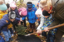 В рамках экологической акции «Посади дерево!» воспитанники старшей группы «Светлячок» посадили елочку в Уголок леса на экологической тропе детского сада.