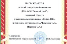 "Алтын күч" коллективы татар телен өйрәнү буенча тәрбияче Ситдыйкова Эльвира Атлас кызын һәм музыка җитәкчеләре Чупахина Светлана Ивановна һәм Норкина Ога Александровнаны "Сәйяр - 2024" муниципаль конкурсында III урын алулары белән котлый. Киләчәктә бик күп могҗизалы вакыйгалар һәм лаеклы җиңүләр телибез!