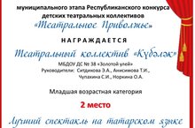 Безнең "Күбәләк" театр коллективын "Театральное Повожье" Республика балалар театр коллективлары конкурсының муниципаль этабында призлы урын алулары белән котлыйбыз!