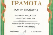 3 ноябрь көнне математика буенча муниципаль олимпиада булып узды, анда 5 нче мәктәпкә әзерлек төркеме укучысы АБРАМОВ ВЛАДИСЛАВ катнашты. Яңа белемнәргә омтылу һәм теләсә кайсы катлаулы мәсьәләләрне хәл итә белү нәтиҗәсендә Владислав призер булды, анда төрле интеллектуаль сынауларны үзләштерүгә алшарт булды.