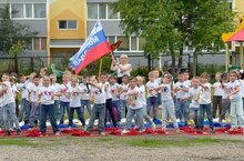 А потом началось самое интересное – соревнования! Юные спортсмены попробовали свои силы в легкой атлетике (бег), показали свою силу в тяжелой атлетике (специальные детские упражнения), а также весело играли в волейбол.