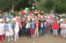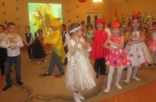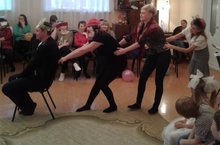 Родители не остались в стороне и вместе со своими детьми станцевали вальс, помогли украсить зал веселыми человечками из воздушных шаров, а «под занавес» показали детям небольшой веселый спектакль по русской народной сказке «Репка».
