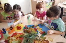 Для поделок щедро осеньНам с деревьев шишки сбросит,Жёлуди, каштаны. –Соберу и стануИз кусочков пластилина,Камешков и шишек,И семян – делать павлинов,Петушков и мишек!Наши руки – не для скуки!Всё умеют делать руки!Интересные делаОсень детям принесла! -
