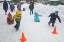 Холодно, морозно нынче во дворе,Но не помешает это детворе!Что же детям делать, как же им гулять?Просто надо в игры зимние играть!Мы построим крепость, слепим мы снежки,Вынесем мы санки, лыжи и коньки.Мы туннель построим, горку изо льда,И не помешают даже холода! -