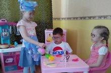 Я сейчас готовить буду.Соберу на стол посуду.Вот, кастрюля, поварёшка,Сковородка, вилка, ложка.Небольшой столовый ножикМне понадобится тоже.Вот, с узорами тарелки,Чашка с блюдцем на салфетке.И, конечно, неслучайноНа плите дымится чайник -Кукол чай пить усажу,О посуде расскажу.Е. Николаева -