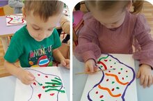Дети сами выбирали цвет носа, цвет волос, цвет колпака клоуна. У каждого получился свой портрет веселого клоуна.