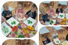 Детки младшей группы рисовали листопад в нетрадиционной технике - при помощи отпечатка листьев на бумаге