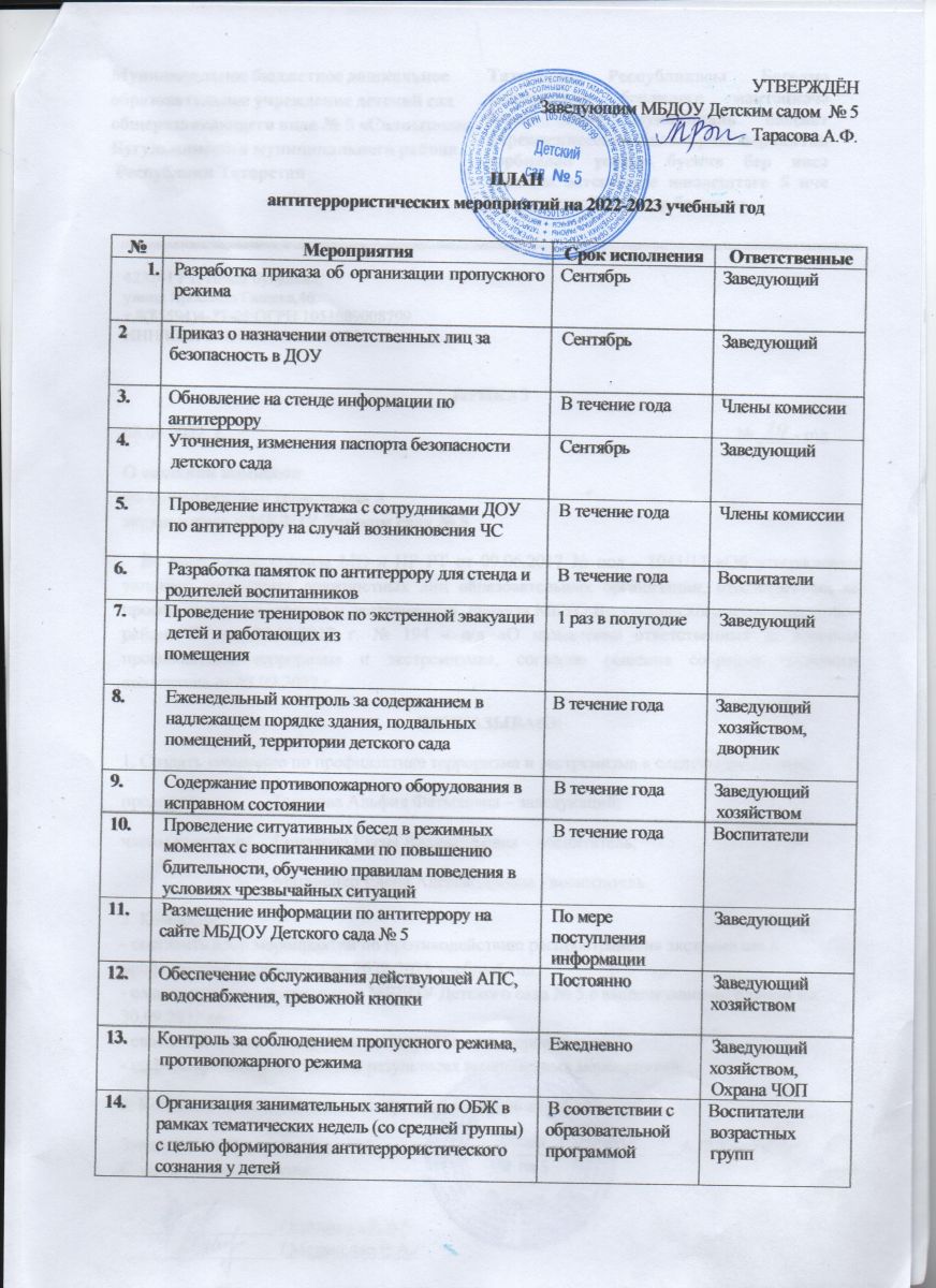 ПЛАН антитеррористических мероприятий на 2022-2023 учебный год