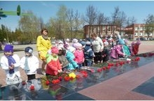 В рамках проекта «Урок Победы» 6.05.2015 г. в МБДОУ № 6 «Дюймовочка» прошла акция памяти для детей старшей и подготовительной групп «Мы помним!». Была организована экскурсия по мемориальному ансамблю «Вечный огонь». Дошкольники почтили память павших солдат «минутой молчания» и возложением цветов к «Вечному огню».