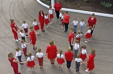 В рамках акции "Звезда Героя" педагогический коллектив и воспитанники нашего детского сада выстроились в форме "звезды" и исполнили песни военных лет "День Победы" и "Катюша"