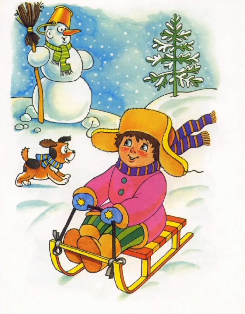 Пришла зима, а с ней пушистый снег, метели, узоры на окнах, морозный воздух. Ребята радуются белым хлопьям снега, достают коньки и санки из дальних углов. Во дворе кипит работа: строят снежную крепость, ледяную горку, лепят снеговика.