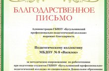 Нашему коллективу вручили Благодарственное письмо от ГБПОУ «Бугульминский профессионально-педагогический колледж».Подробности смотрите и читайте здесь...