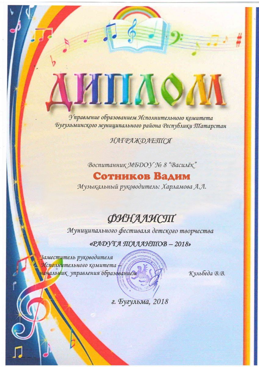 Поздравляем с победой наших старших дошкольников: Рыбкина Глеба, Сотникова Вадима, Забирова Максима, Качурина Евгения и музыкального руководителя Харламову А.Л.