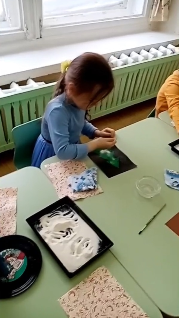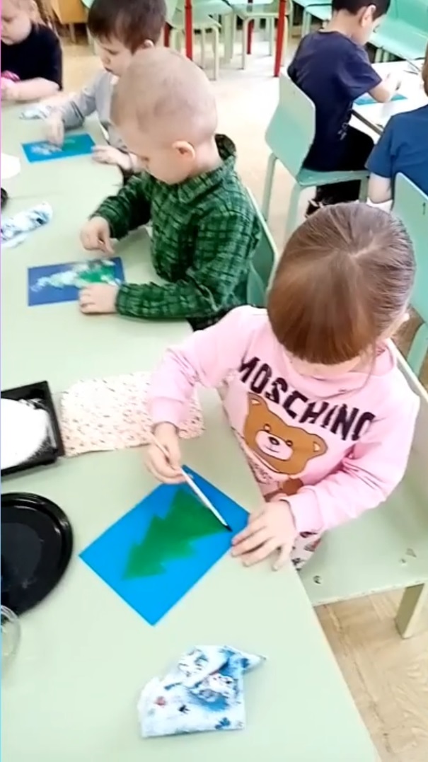 28.01. Закончилась тематическая неделя "Природа зимой". Сегодня, на занятии по аппликации "Весёлые ребята" сделали красивую заснеженную ёлочку с помощью цветной бумаги и манной крупы! Получилось очень красиво! (Смотреть видео)