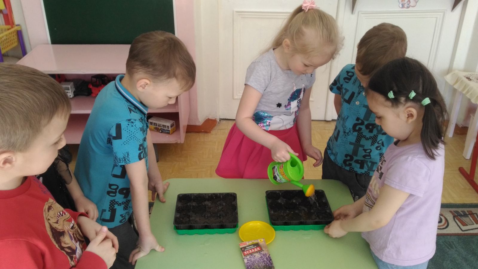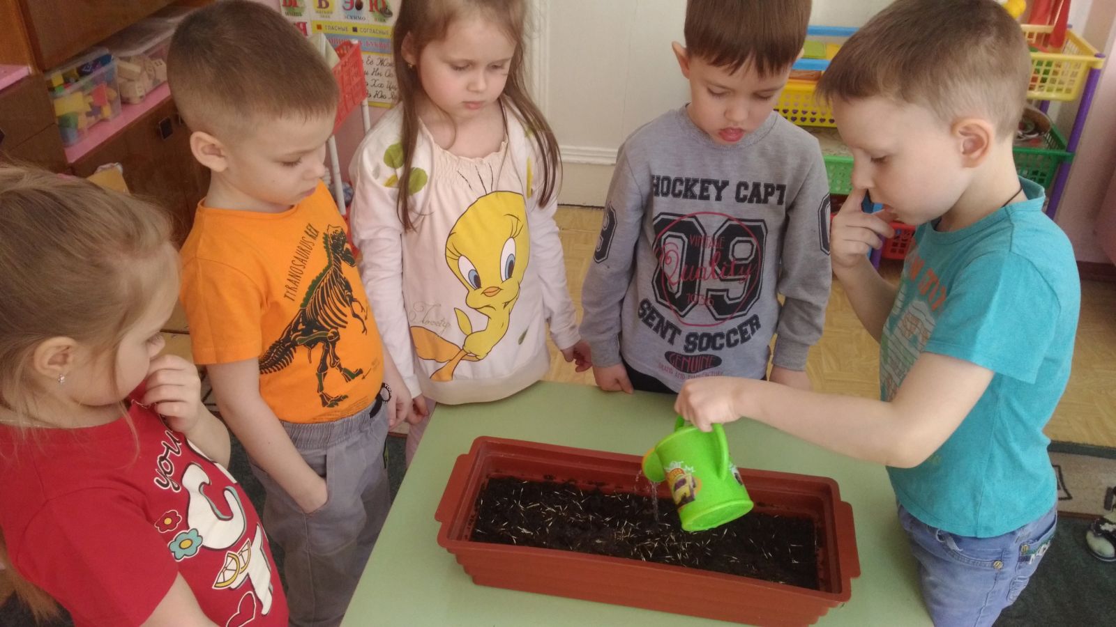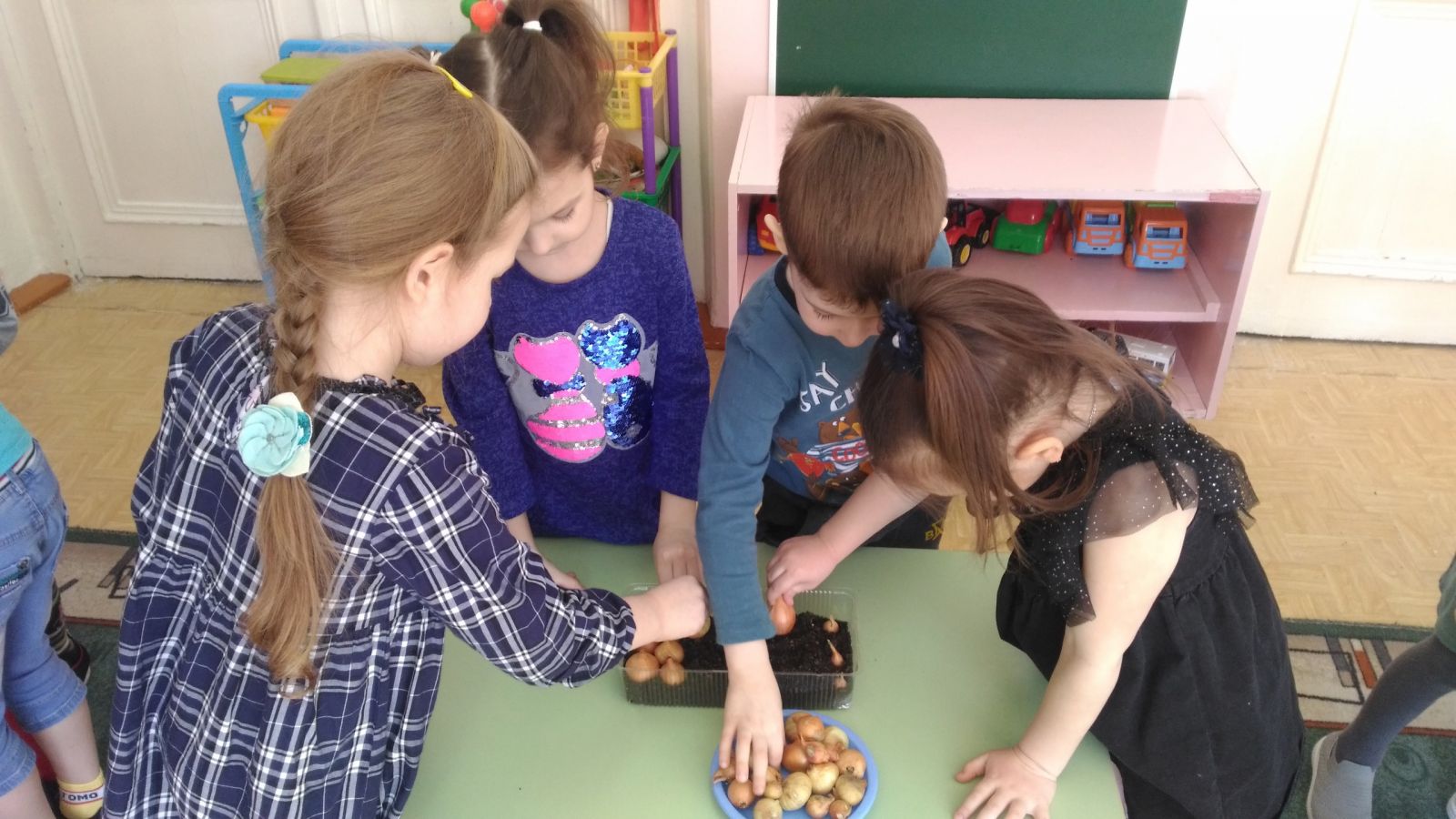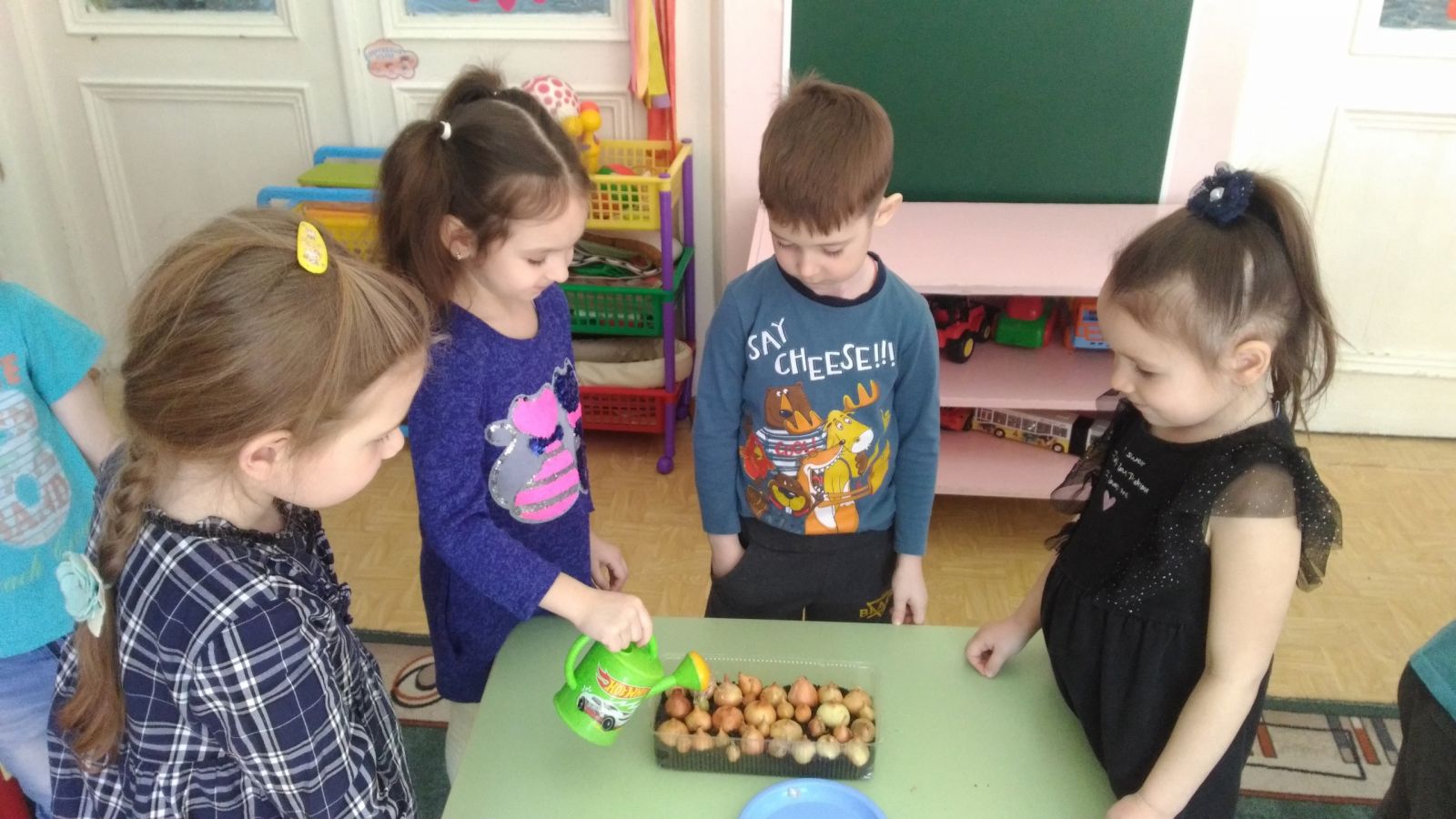 "Весёлые Ребята" решили, что вырастить зелёные перья лука будет им по силам! Мы очень старались!