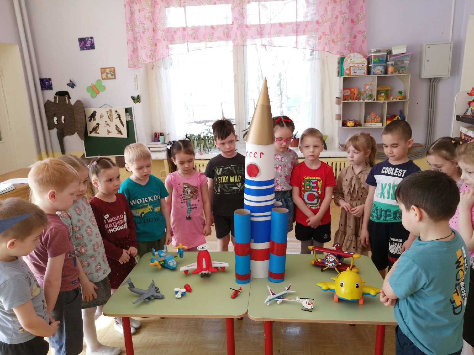 Завершилась тематическая неделя "Неделя авиации и космонавтики". В беседах, на занятиях дети узнали много нового: про Вселенную, планеты, о первых собаках-путешественниках в Космос (Белке и Стрелке), первом человеке-космонавте Ю. А. Гагарине.