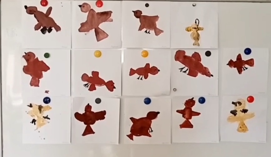 Ребята повторили названия перелётных птиц, их особенности, поиграли в игру "Десять птичек — стайка". В совместной творческой деятельности, на занятии по рисованию, мы тоже затронули эту тему. Вот такая стайка птиц сегодня вернулась к "Весёлым ребятам" из тёплых стран. (Смотреть видео)